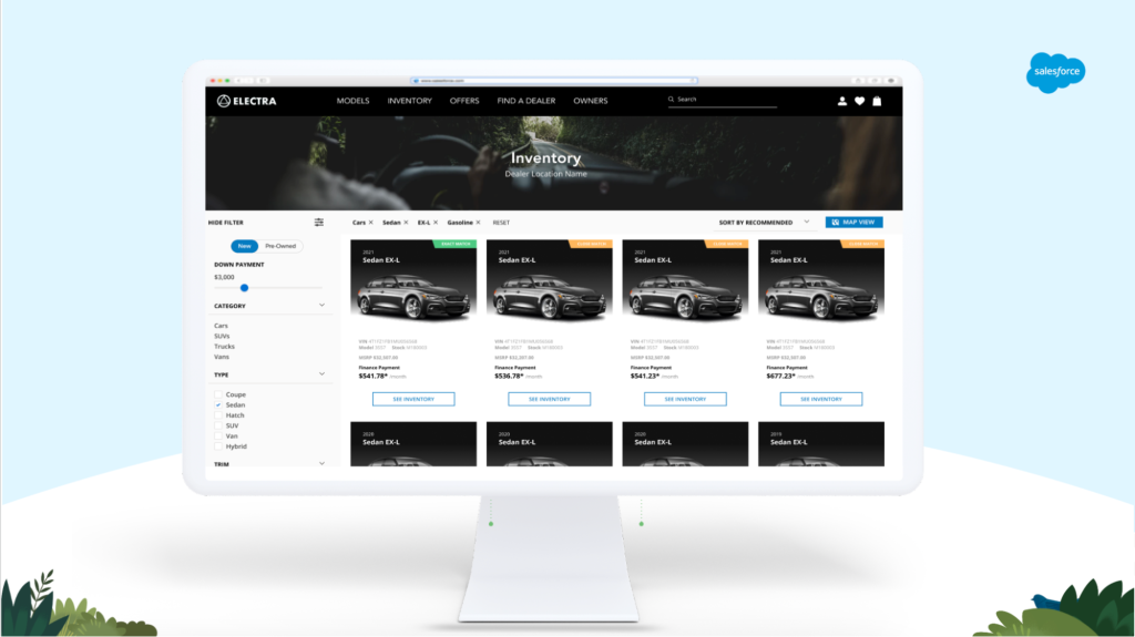 - New Commerce Cloud solutions available in spring 2023 and AppExchange integrations available now help streamline the car buying process in an increasingly digital shopping environment.