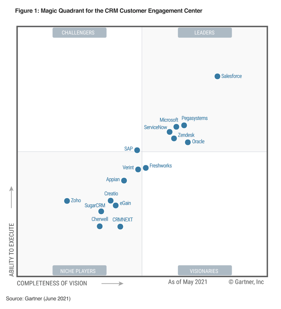 Salesforce Recognized as a Leader in 2021 Gartner Magic Quadrant for CRM Customer Engagement Center