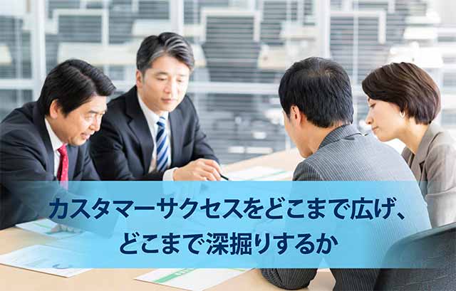 顧客を成功に導く方法には多くのアプローチがあり、「どこまで掘り下げるか」という深度もあります。当初は一点集中で始めたカスタマーサクセスの活動が、ある程度軌道にのってくると「どこまで拡大し、どこまで深掘りすべきか」と、頭を悩ませる場合もあります。