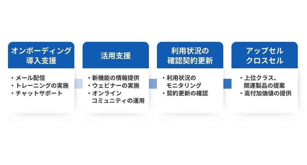 SaaSビジネスにおけるカスタマーサクセスには、以下の4つの業務内容があります。