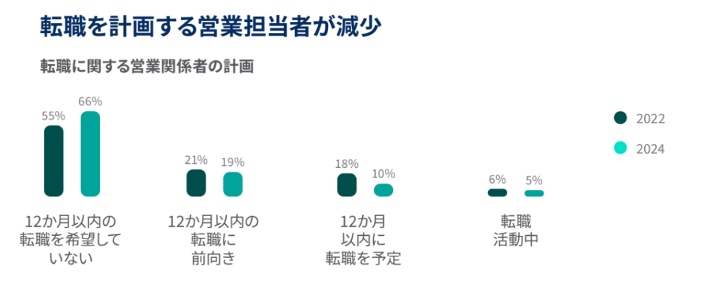 - 日本の営業職の3%が現在転職を希望しています。