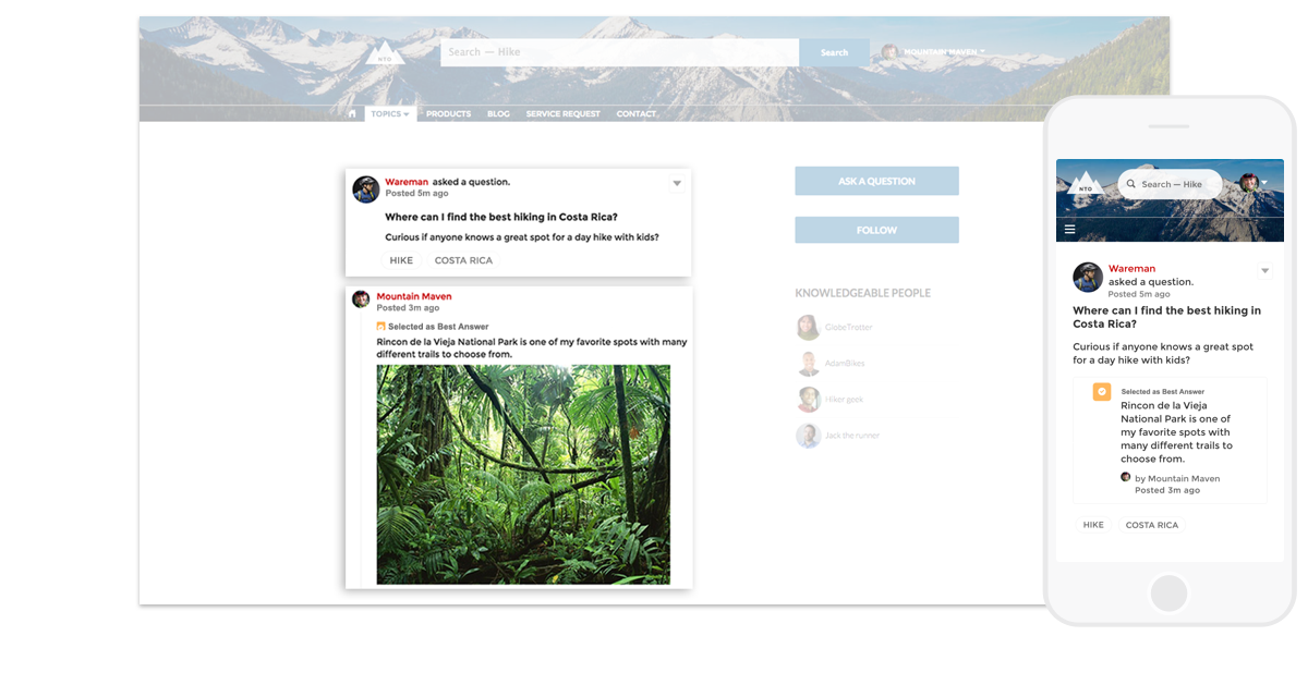 If customers can't find answers to their questions, they can post to the community and get answers from peers and topic experts, fast. The best answers rise to the top through user voting.