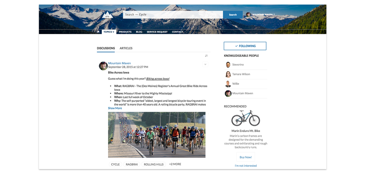 Community Cloud automatically recommends people to connect with, groups to join, products to explore — all based on each user's interests. You can also create your own recommendations to target specific customers.