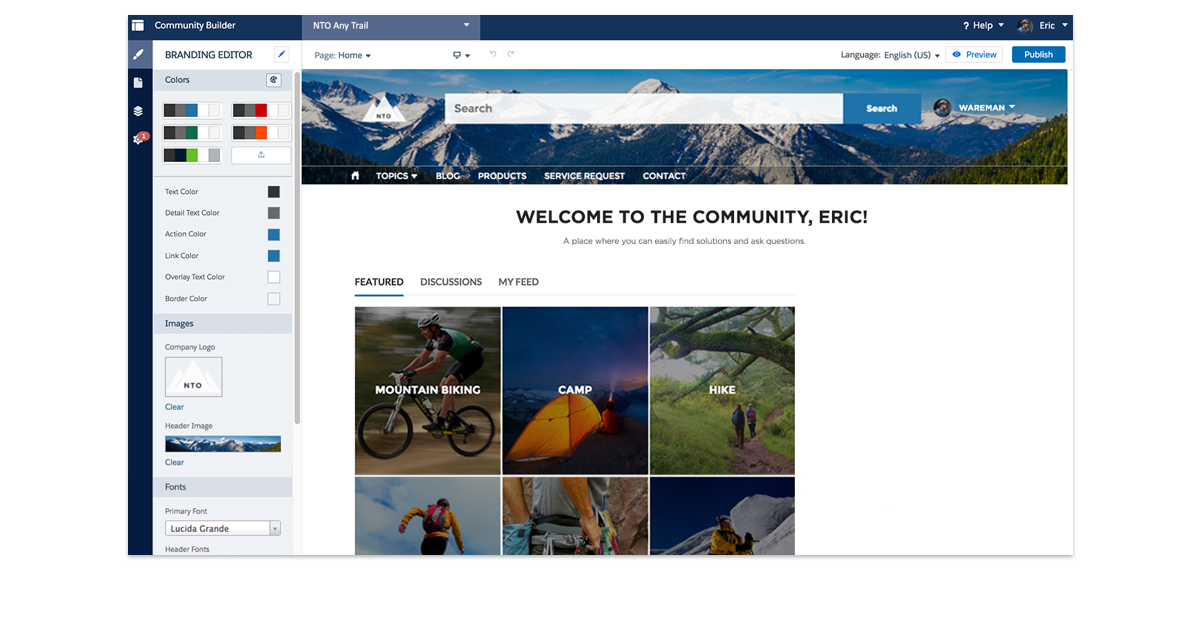 Set up a community faster than ever. Lightning Community Builder provides simple drag-and-drop tools and customisable templates to build a vibrant, branded, mobile-friendly community — no coding required.