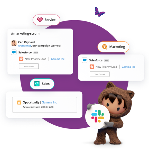 You can integrate Slack for departments like sales, service, marketing, and others to speed up sales pipelines, solve cases and queries faster, create marketing campaigns, and more. For example, let’s say you want to track leads, you can integrate your customer relationship management (CRM) data, and get ready to start managing your data easier. You can access customer information easily and receive updates on leads and deals in your team Slack channels.