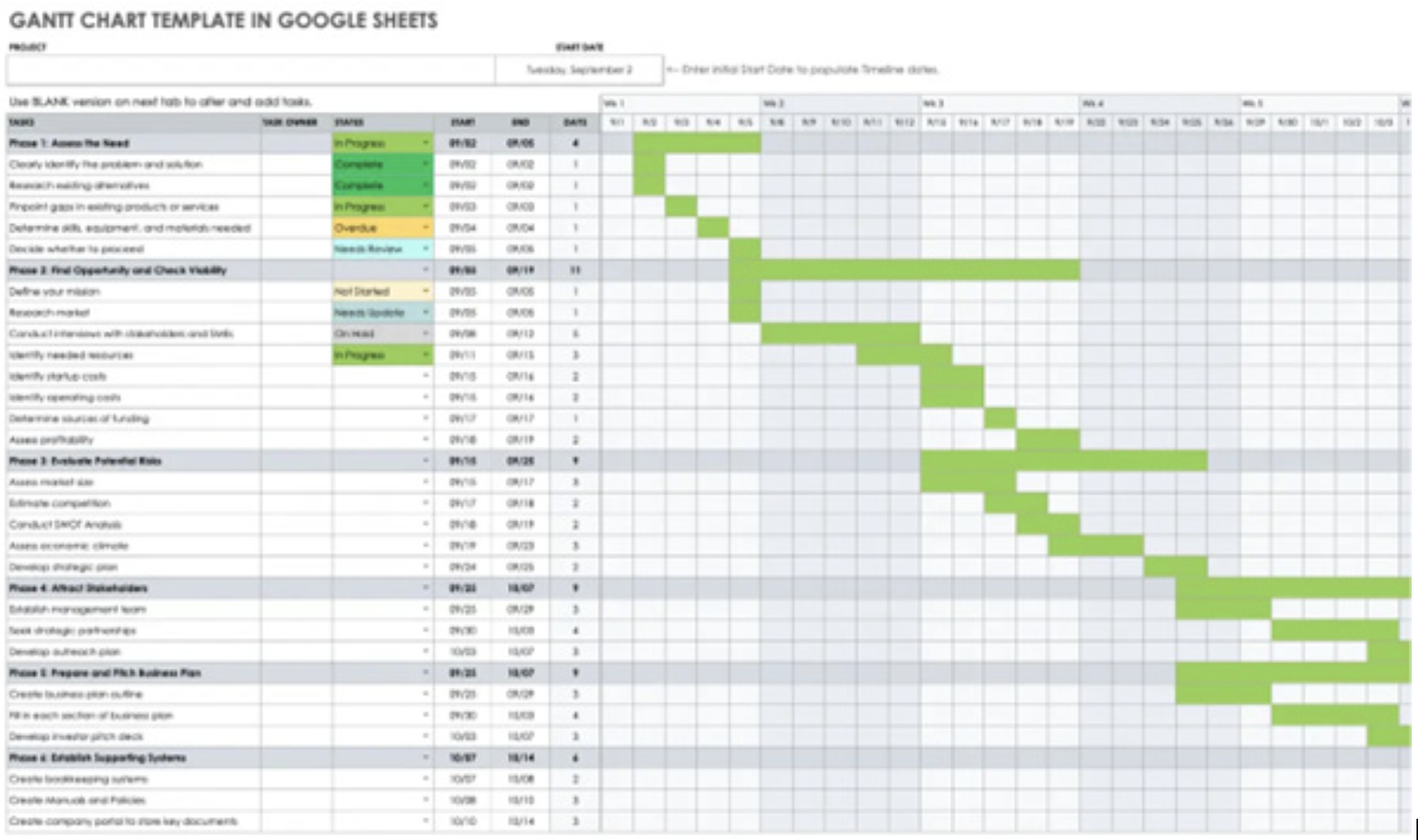 With all of the information ready, we can now use our chosen tool to create a Gantt chart for our business. We’ll need to include all essential details, such as: