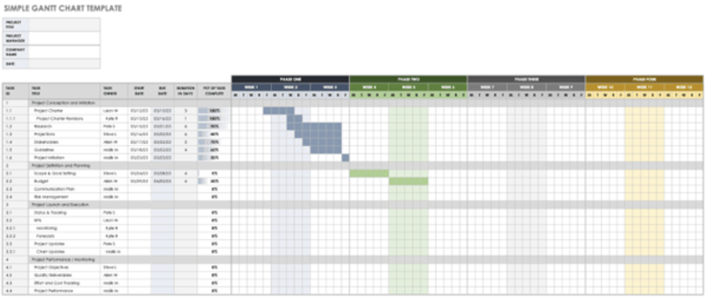 Coding is filled with tight deadlines and upcoming release schedules. The Gantt chart helps every software developer stay on top of their daily tasks and work efficiently. In the example below, the project manager also allows time for quarterly meetings and stakeholder discussions.