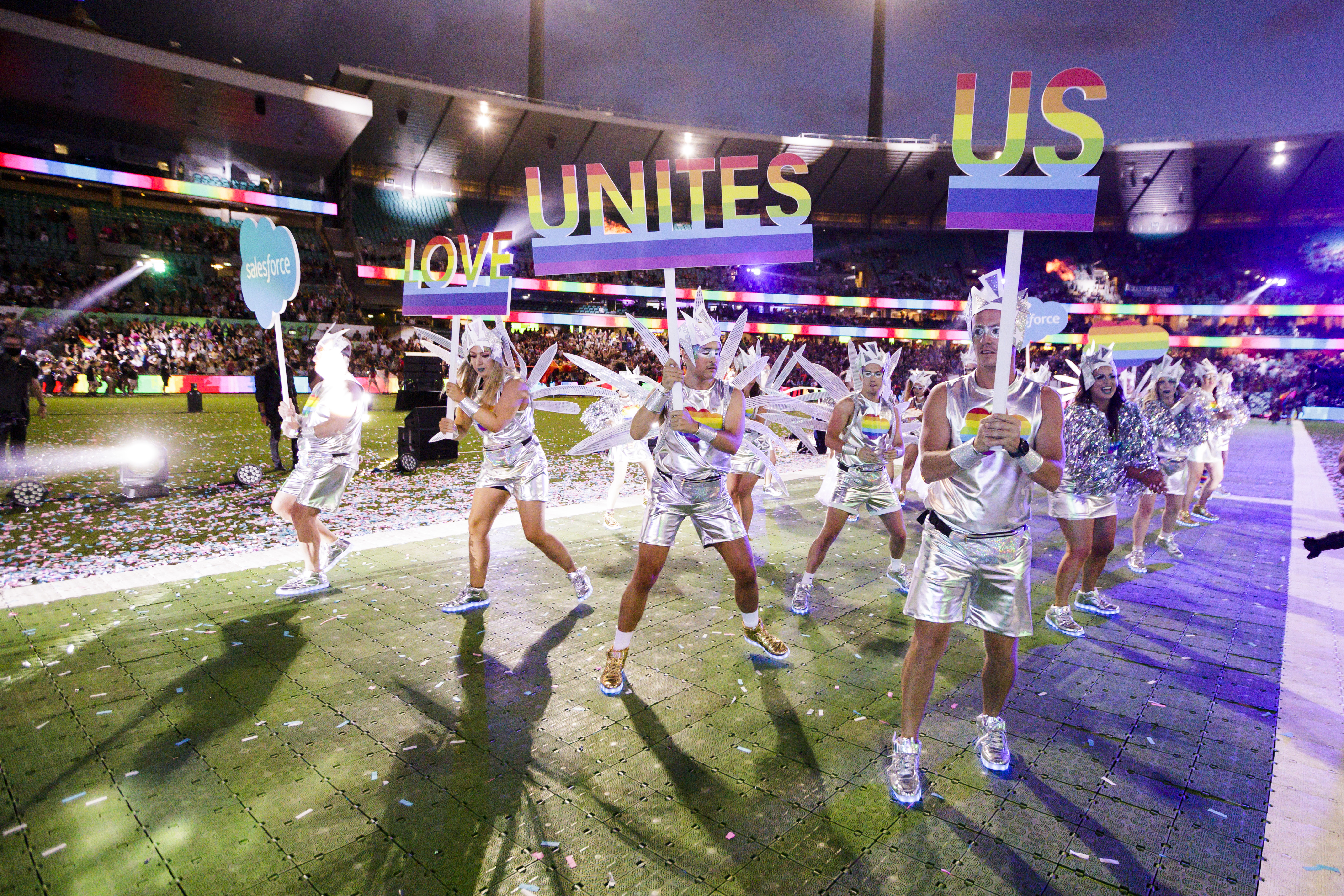 The 2021 parade was certainly one to remember: 38 Salesforce team members shimmied, vogued and marched their way around the Sydney Cricket Ground in front of an audience of more than 40,000.