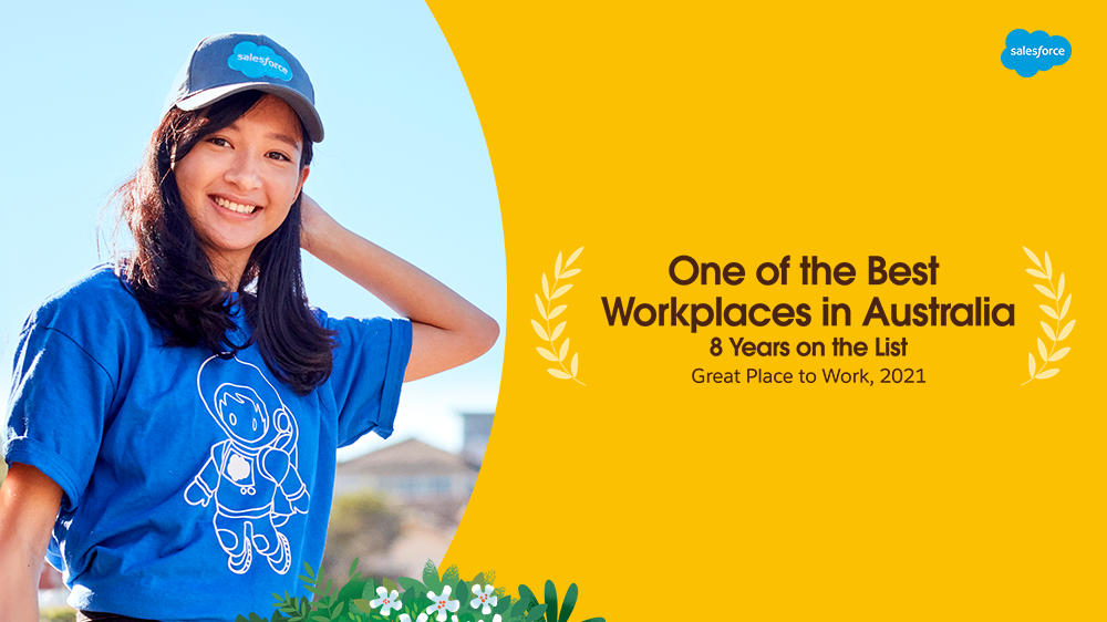 I’m proud to announce that Great Place to Work has named Salesforce its #1 Best Workplace in Australia. This recognition is a win for all of us at Salesforce, because every employee is responsible for building and maintaining our exceptional culture.