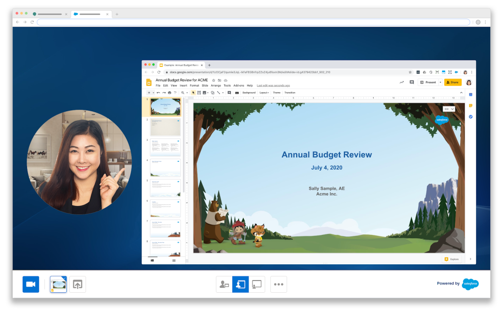 Salesforce Meetings makes virtual conversations more engaging, with a 360 view of all attendees’ account history, service cases and bios on a single screen during the meeting, and automated action items for salespeople after the call.