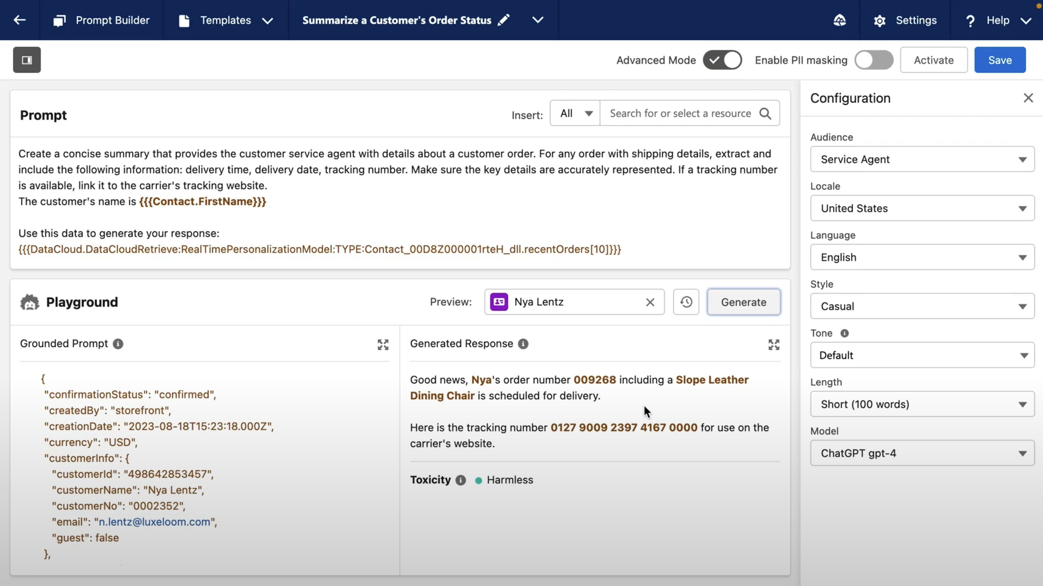 - Prompt Builder: Prompt Builder will let users build, test, and deploy generative AI prompts that match their company’s brand and communication style, all without requiring deep technical expertise. For example, a marketer could ask Prompt Builder to generate a personalized message and discount for a new product based on the customer’s purchase history and location. Einstein Copilot will then auto-generate personalized messages that align with individual customer preferences, reference past purchases, and demographic information. Unlike other prompt engineering tools that require integration and specific skills, Prompt Builder will be a low-code experience that rapidly delivers grounded prompts across any CRM app or workflow, with the Einstein Trust Layer included.