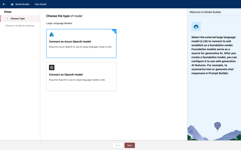 • Model Builder: Choose an LLM or build an AI model based on the job to be done (GA) Unlike other solutions that limit businesses to a single Large Language Model (LLM), Einstein 1 Studio provides the flexibility to connect to a variety of AI models. Additionally, Model Builder is a no-code, low-code, and pro-code way for companies to build their own predictive AI models, trained on their Data Cloud data. For generative AI, Model Builder allows customers to select from LLMs managed by Salesforce, or bring their own models. Businesses can use predictive and generative AI models and services from Salesforce partners, including Amazon Web Services (AWS) via Amazon Bedrock and Amazon SageMaker, Anthropic, Azure OpenAI, Cohere, Databricks, Google Cloud’s Vertex AI, and OpenAI, and train or fine-tune select models on Data Cloud data without moving or copying data.