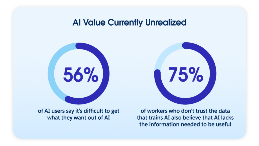 - More than half (53%) of workers say training AI on comprehensive customer/company data builds their trust in the tool.