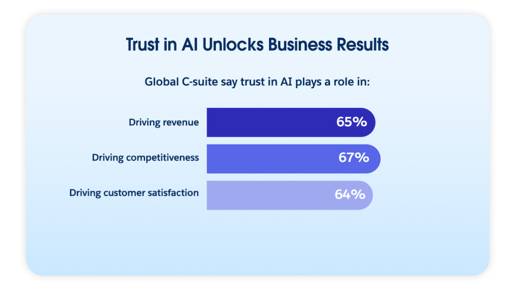 - 65% of global C-suite say trust in AI plays a role in driving revenue.