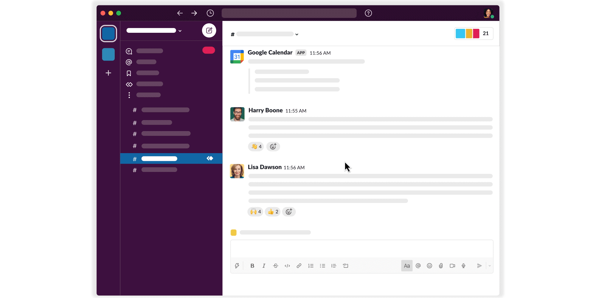 • With clips, users can leave quick and simple video or audio messages right from any Slack channel or DM, providing them with more flexible and asynchronous ways of communicating with their team.