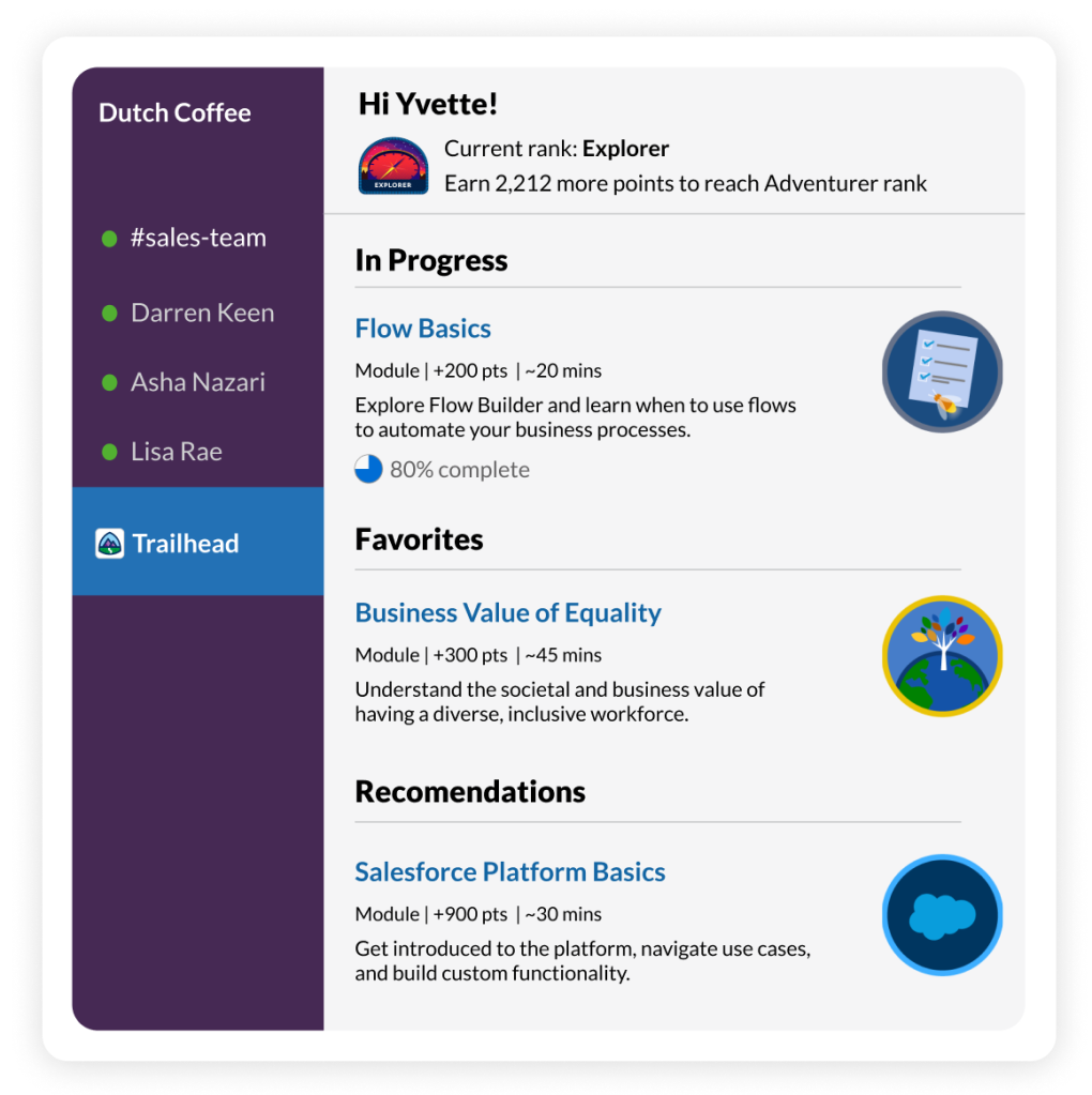• Slack-First Trailhead powers personalized learning directly in the flow of work in Slack.