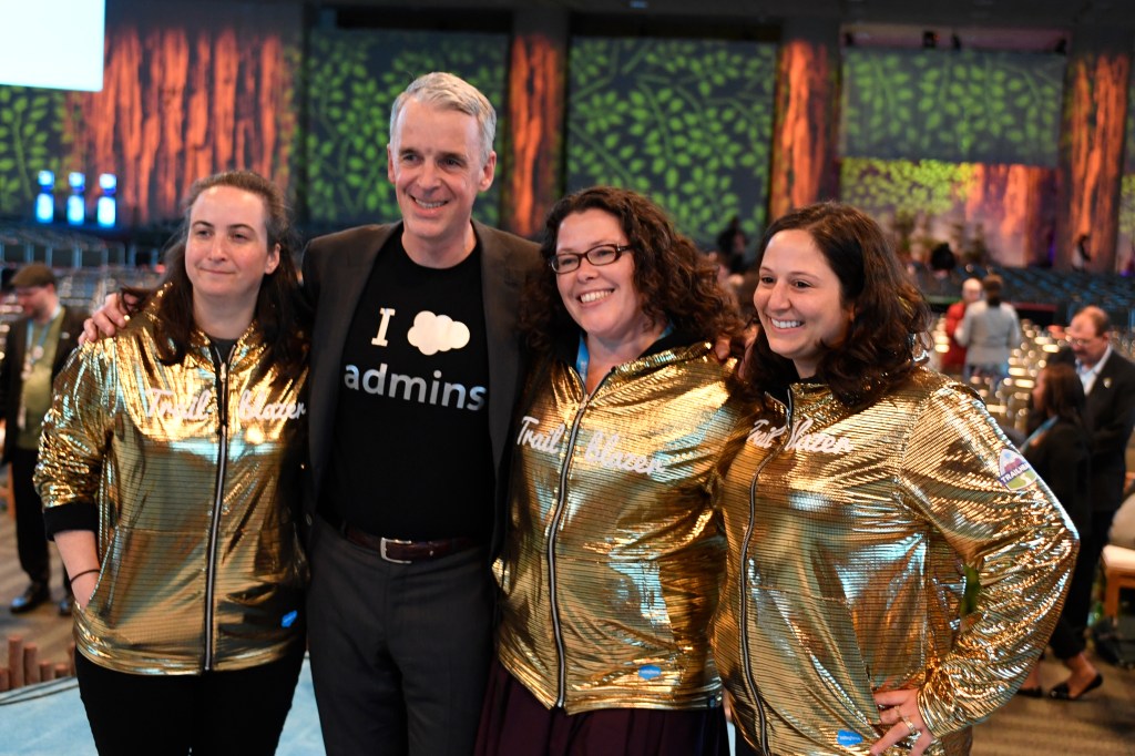 “This is, of course, our co-founder Parker Harris, with three ‘Golden Hoodie’ winners [exceptional Trailblazers celebrated at our events] back in 2017. I was here for this photo, and I love that the winners are all women!