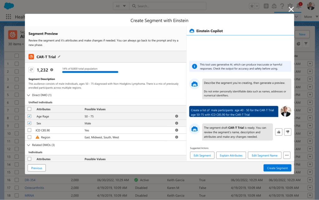 - Data Cloud for Health (GA now) securely connects and activates medical, social, and behavioral patient data from different sources into a unified, real-time profile. This enables pharma and medtech companies to help identify potential patient or study risks, like adherence to therapies in clinical trials. In addition, Data Cloud for Health can create segments from that data, such as groups that could be suitable for a new clinical trial or care program.
