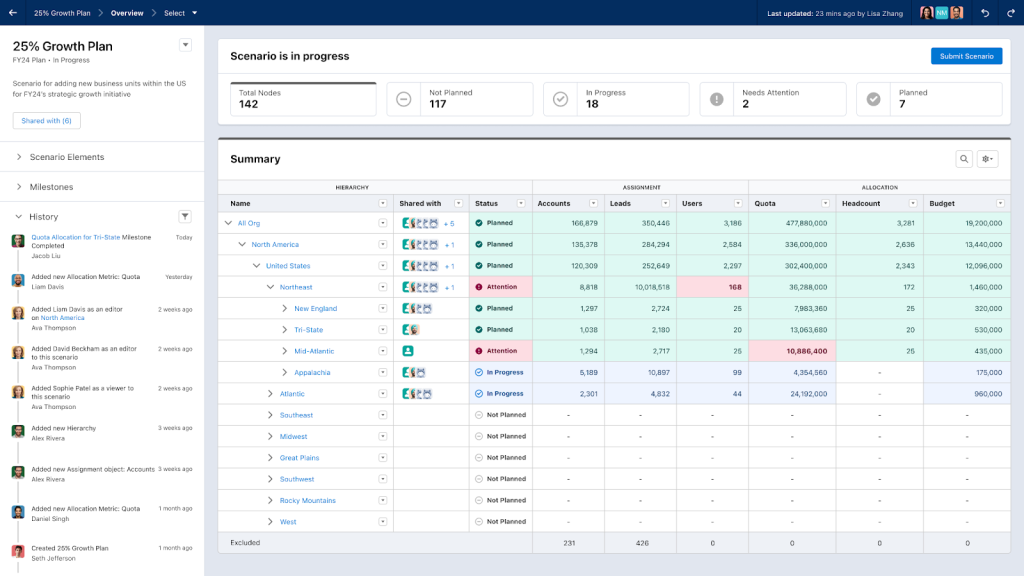 • Sales Planning — A native, end-to-end solution that transforms planning from clunky to intuitive. Now, customers can intelligently allocate targets, budget, headcount, and more with auto-allocation and seamless in-app collaboration.