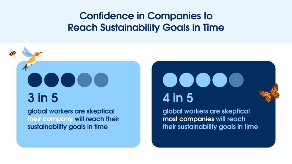 Research reveals that employees around the world doubt their own companies reaching their sustainability goals in time. They have even less faith when looking at their confidence in most companies.