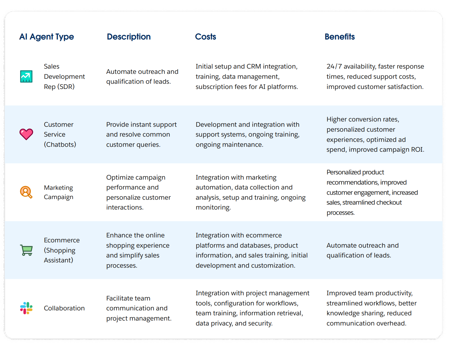 Not sure where to start with implementing your AI agent? Luckily you can deploy an AI agent across almost every aspect of your business, and our handy chart gives you an idea of your choices.