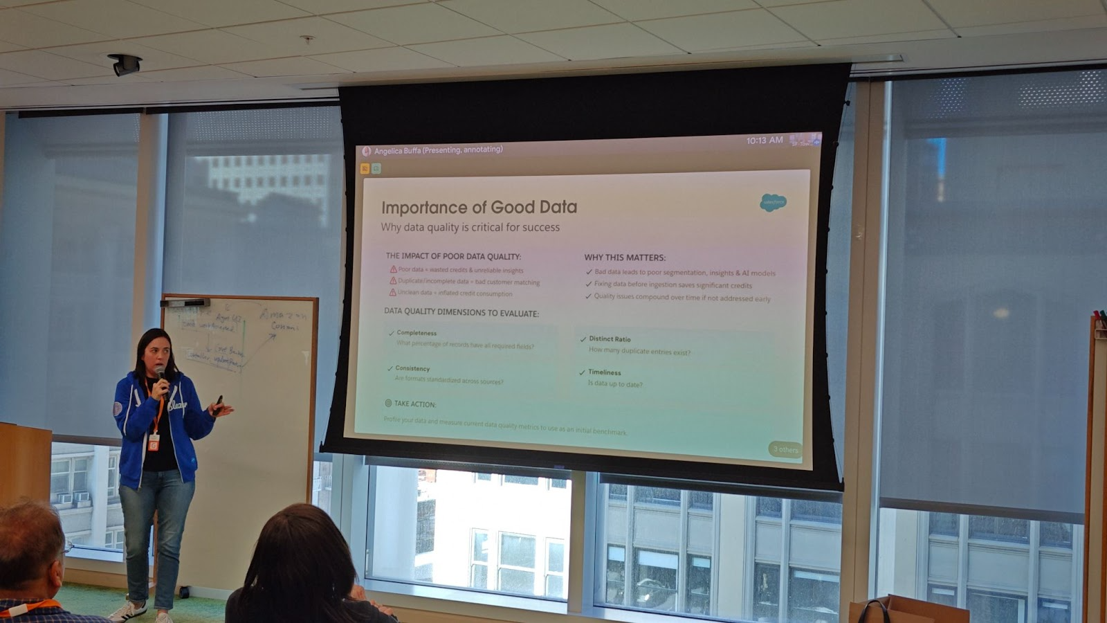 Attendees learn to assess CRM data for potential risks before ingestion into Data Cloud — mirroring the real-world wisdom shared by Suzie Campbell, director of Start Early, at our very first DMO: “Every Data Cloud project starts without Data Cloud.”