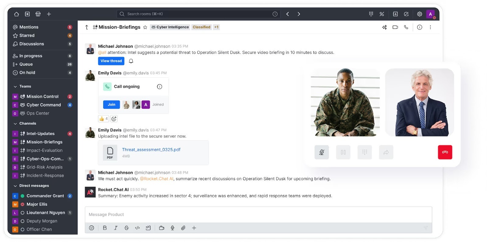 - Channel-based messaging: Supports public and private channels, direct messages, and threaded conversations for structured communication.