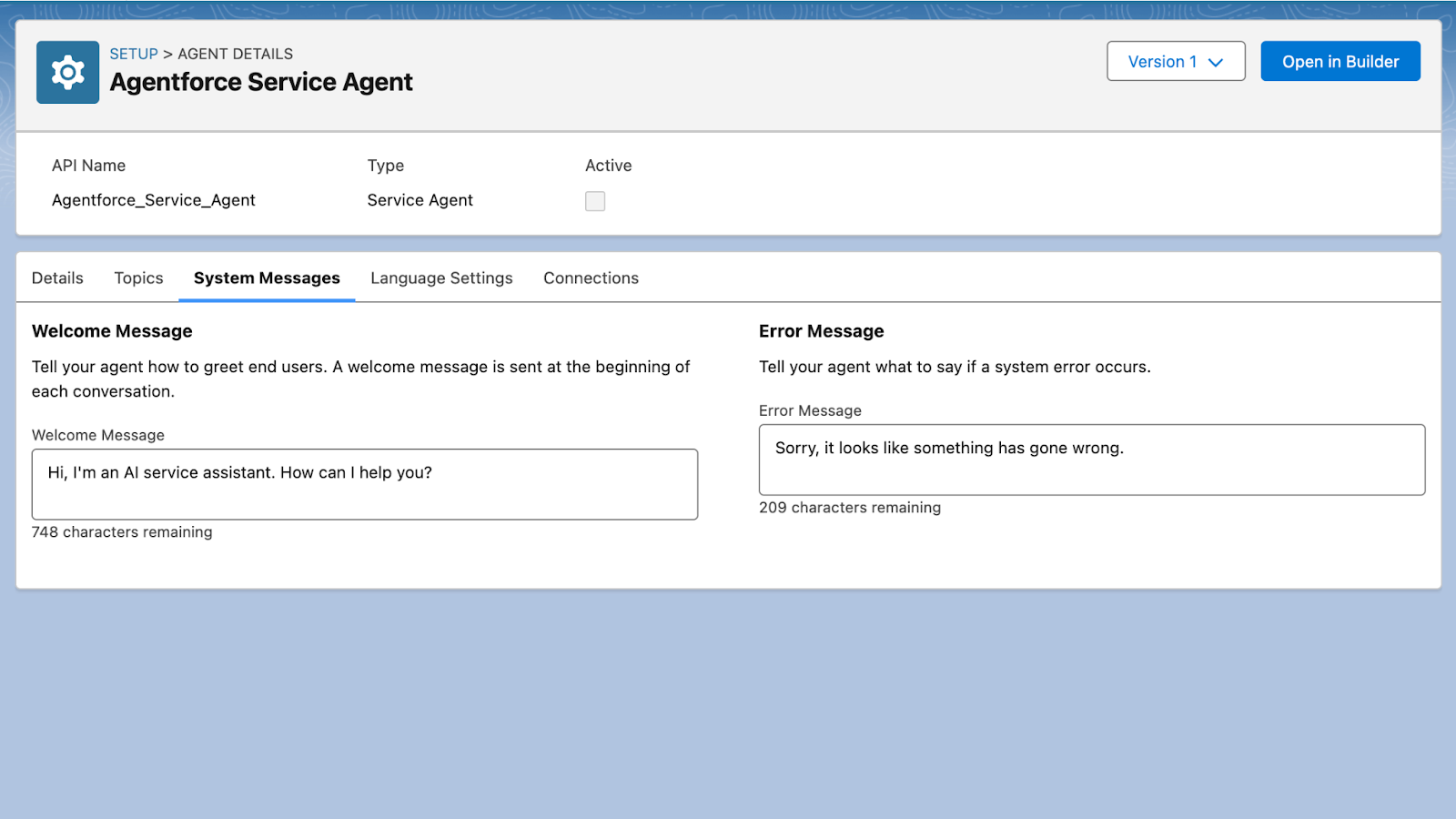 Important note: This article applies to the legacy Agentforce Builder under Setup → Agents.