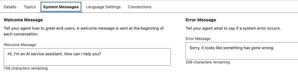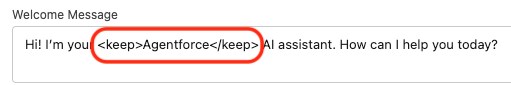 Your agent’s welcome message and error message that are manually set by the Agentforce Builder in Agent Settings.