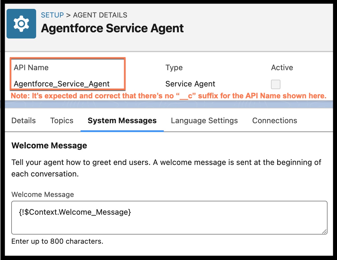 1. Agent Details: Update the Welcome Message to use the new Context Variable