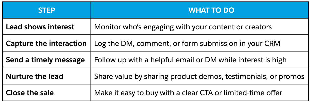 Picture this: An influential creator posts about your product. People find it interesting. They click and maybe even fill out a form. Now what? Here’s what should happen: