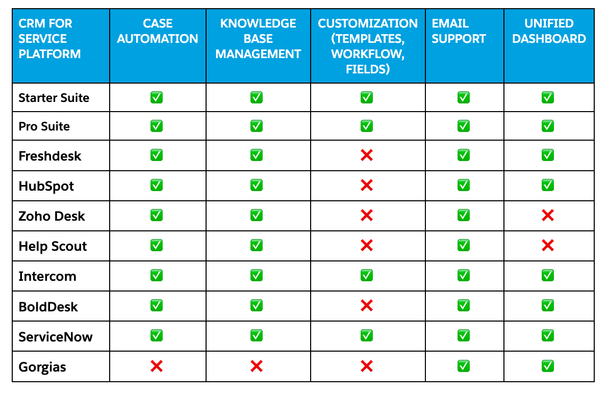 For service, Starter Suite offers service tools like case management, knowledge management, and email support templates to keep your team productive and customers happy. It’s perfect for building a solid service foundation fast minus the complexities.