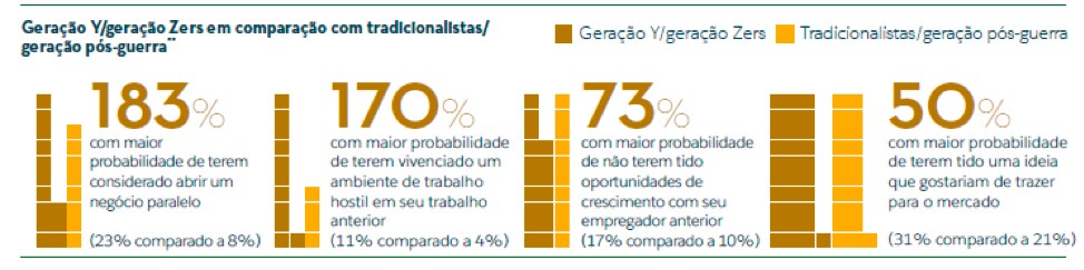 ** respostas em percentual em destaque seguem fórmula: (Geração Y e Geração Z – tradicionalistas e geração pós-guerra) /tradicionalistas e geração pós-guerra