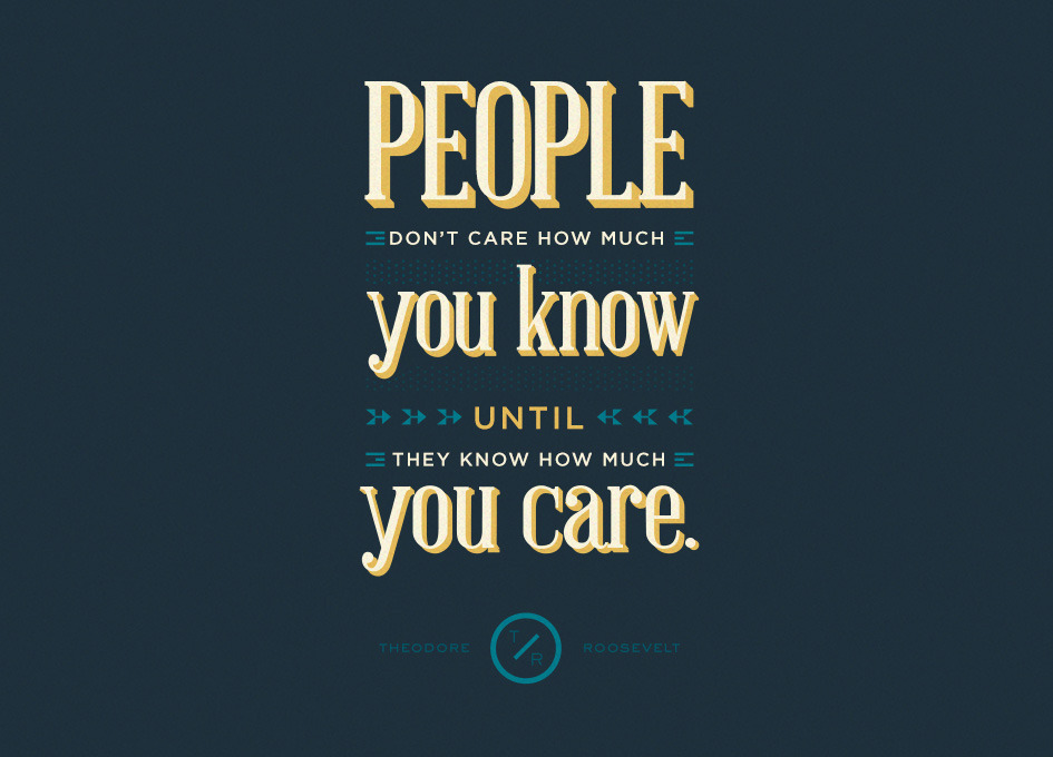 People don’t care how much you know until they know how much you care — Theodore Roosevelt
