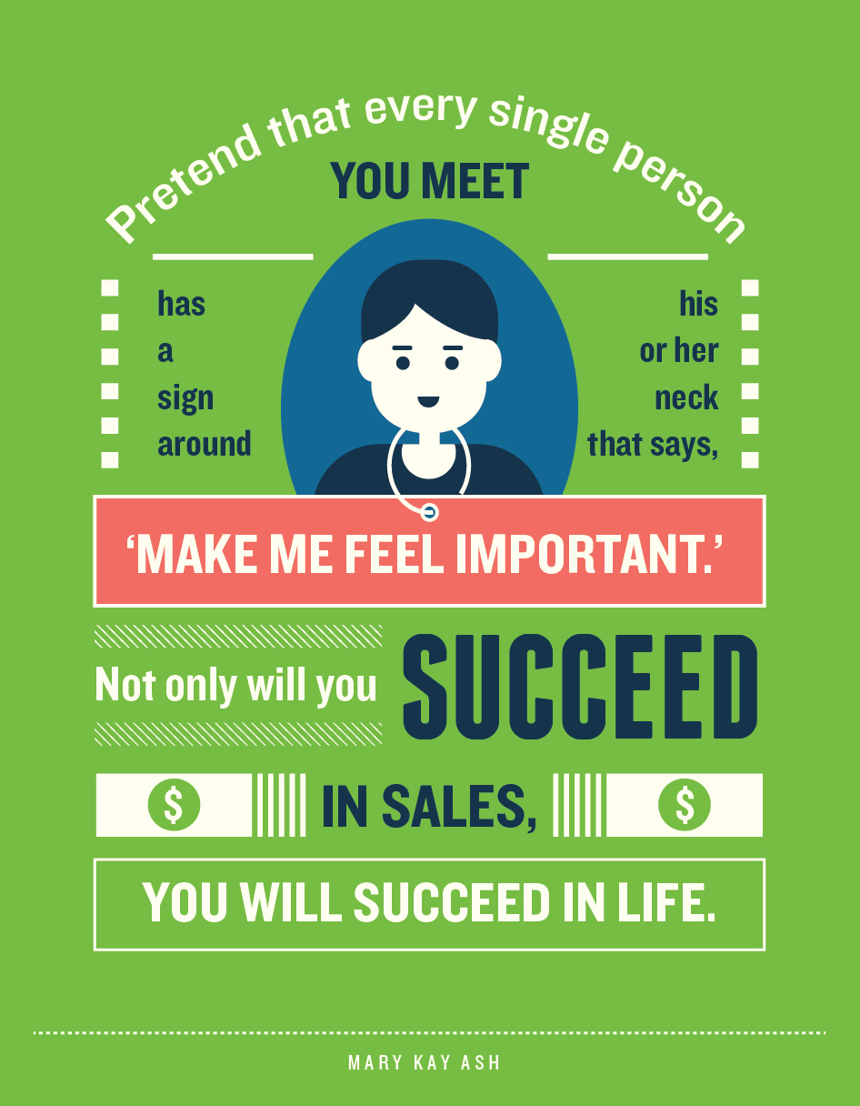 6. “Pretend that every single person you meet has a sign around his or her neck that says, ‘Make me feel important.’ Not only will you succeed in sales, you will succeed in life.” — Mary Kay Ash (Source)