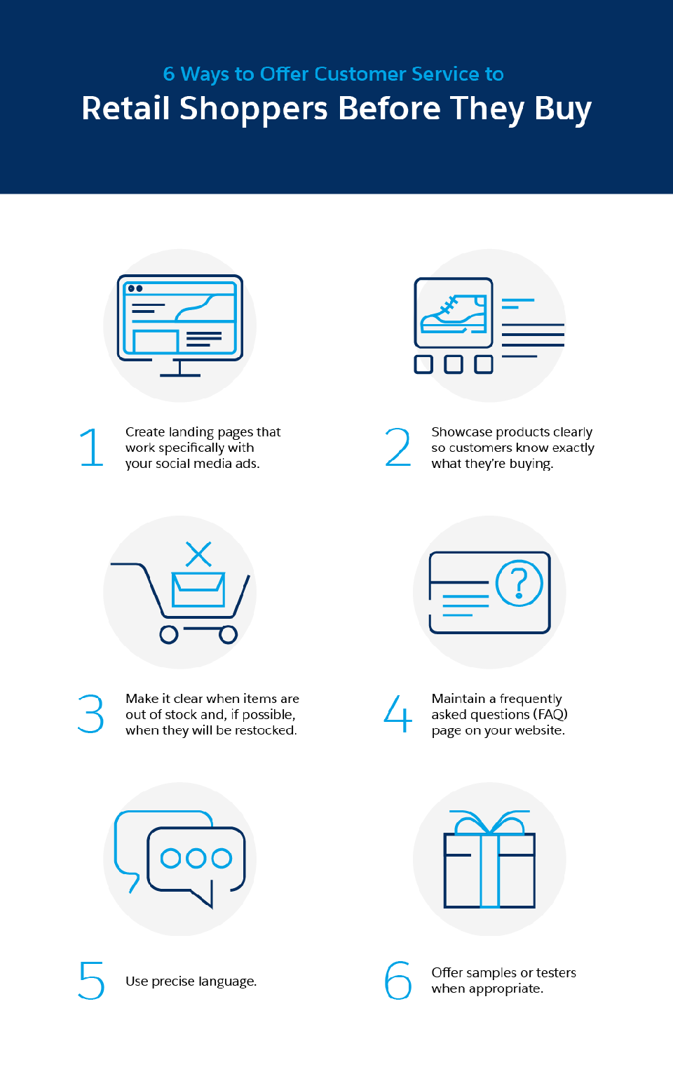 Customer service starts at the very beginning of your relationship with a customer. Target online advertising, from banner ads to social media ads and beyond, to specific buyer personas. Include a clear call to action that leads to a landing page to help viewers quickly and easily convert. For example, when you post an ad for a product on Instagram, make sure the ad takes the visitor to a landing page tied to that ad campaign to make the transaction as effortless as possible for the lead.