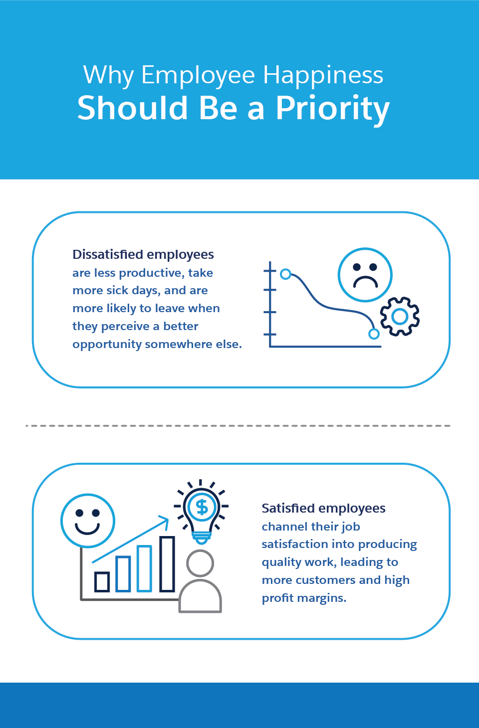 Unhappy employees don’t just bring down the mood at all-hands meetings. They can sink a business’s bottom line as well. Dissatisfied employees are less productive. They take more sick days, and they’re more likely to leave when they perceive a better opportunity somewhere else.