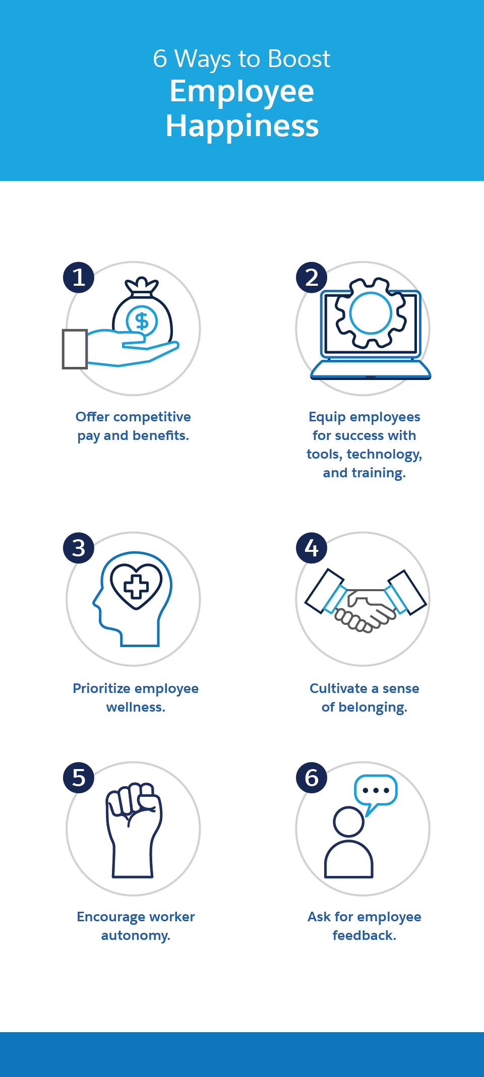 You can’t know what’s making your employees unhappy or what would make them thrilled to keep working at your company unless you ask them. Before implementing any new measures to improve employee happiness, seek feedback. You might even be surprised by what you hear from your team. Maybe you assumed your employees wanted the option to work remotely when more of them would actually prefer flexible work schedules.
