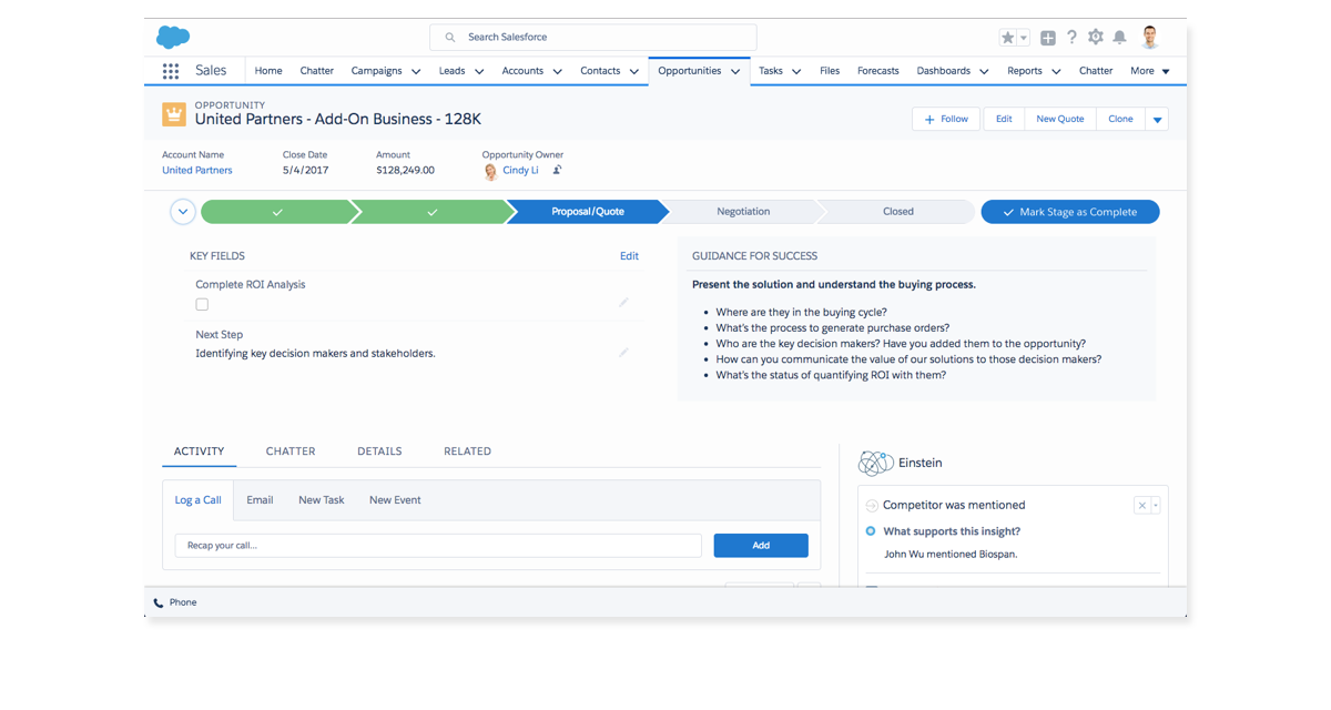 Our intuitive interface makes it easy to track every detail of your sales deals and use Einstein AI to uncover the best actions to take next to close the opportunity.