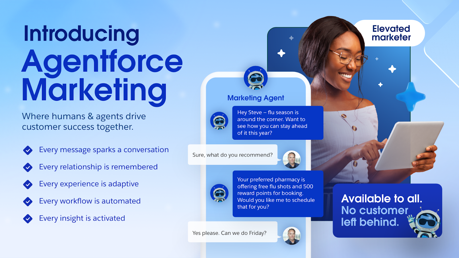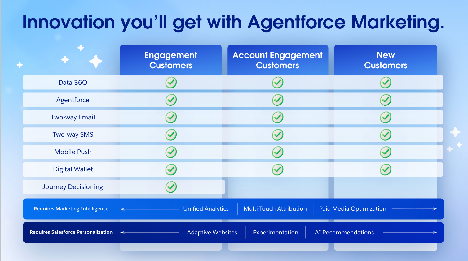 Disponible para clientes de Marketing Cloud Engagement y Account Engagement: Agentforce y Data 360 ofrecen un modelo de marketing con IA como copiloto, conectando datos, campañas y acción en un solo lugar.