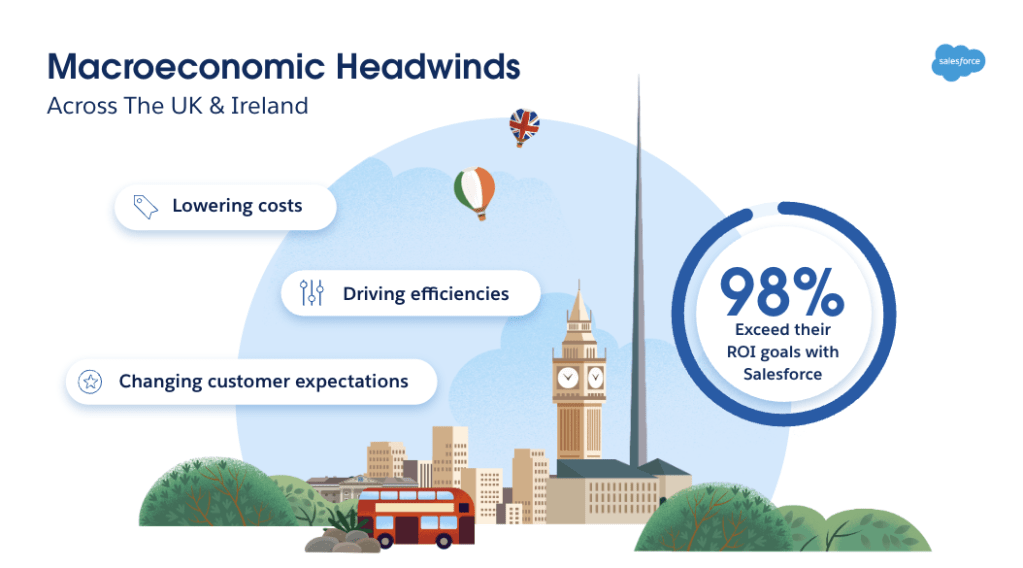 We’re seeing macroeconomic headwinds across the UK & Ireland. Ruqaiyah shared that more customers are coming to Salesforce needing to lower costs and drive efficiencies — all while dealing with changing customer expectations.