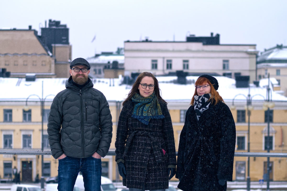 Lahjoittamon tiimi: Otso, Johanna ja Irina; Kuvaaja: Risto Kokkonen