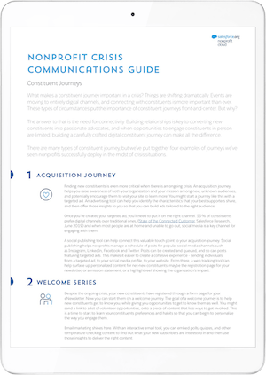 Download this guide for four examples of constituent journeys that nonprofit marketers have successfully deployed in the midst of crisis situations.