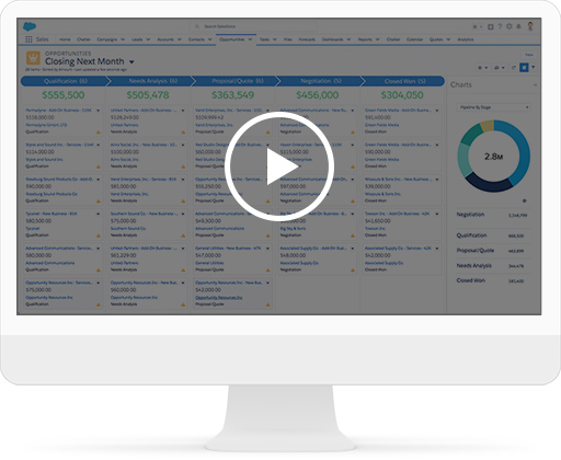 Sales Cloud, l'outil CRM et d'automatisation des forces de vente, dynamise toutes les étapes de la vente : de la gestion des opportunités à la signature du contrat.