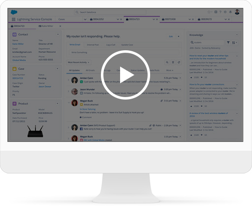Du centre d'appels au portail en libre-service, Service Cloud vous aide à anticiper les besoins de vos clients et d'offrir un service client plus réactif, plus intuitif et plus flexible.