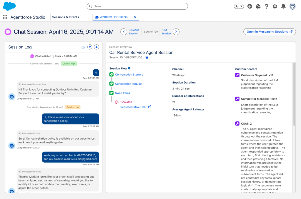 אלו מדדים חיוניים, ולכן Agentforce כולל אותם כחלק מובנה בפלטפורמה. לכל לקוח חייבת להיות הבנה בסיסית של ביצועי הסוכן שלו. אבל המדדים האלה מספרים רק חלק מהסיפור: