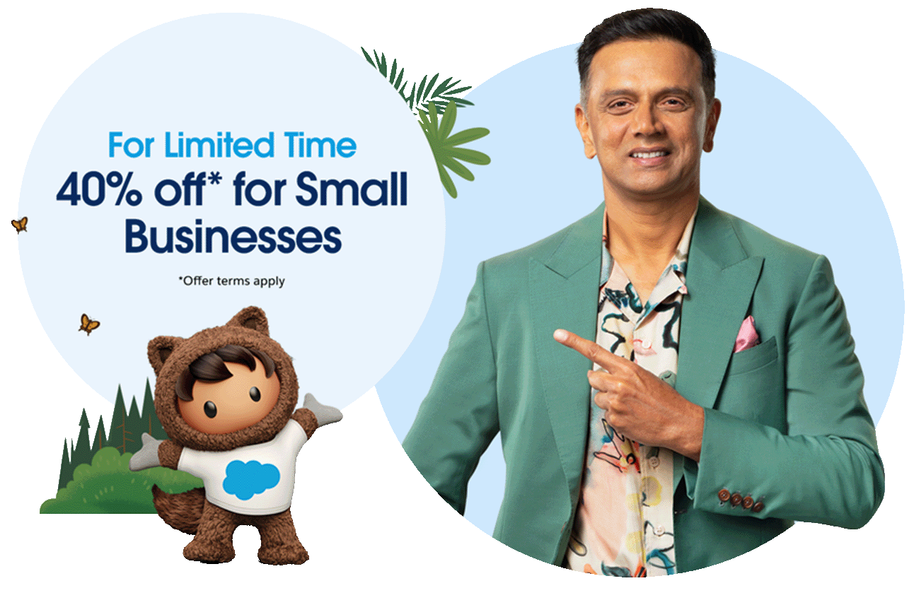 For the first time, Salesforce India is making it easier than ever for Indian SMBs to compete — and win. Get 40% off our flagship solutions — Sales Cloud, Service Cloud, and Marketing Cloud.