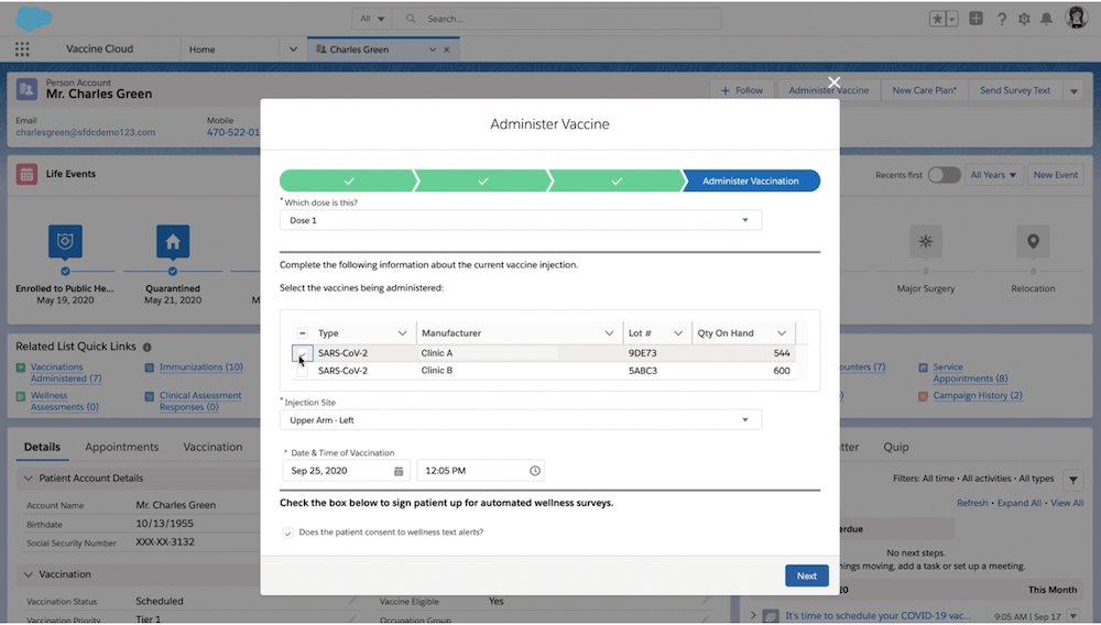 Vaccine Cloud is part of Salesforce’s COVID-19 response technology solutions, which include vaccine inventory management, appointment scheduling, outcome monitoring, public health outreach and more. Learn more about Vaccine Cloud here.
