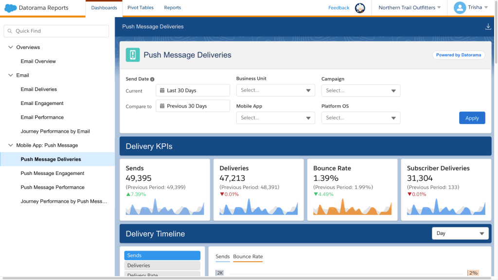 - Datorama Reports for Marketing Cloud: Powered by Salesforce Datorama, Marketing Cloud’s analytics offering, marketers now have direct access to new email, mobile and journey reports to analyze and optimize performance — all within the Marketing Cloud interface.