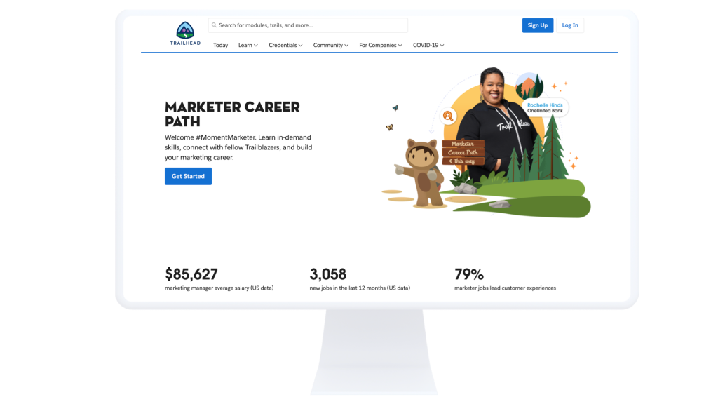 - Marketer Career Path on Trailhead: Now, there is a single destination in Trailhead — Salesforce’s free online learning platform — with resources for anyone looking to start or build their marketing career. With over two million marketing badges earned to date, Trailhead is providing anyone with access to job-specific learning, a community of expert marketers, and custom learning paths to upskill for marketing career paths in email, demand generation, marketing analytics, data science and CMO leadership.